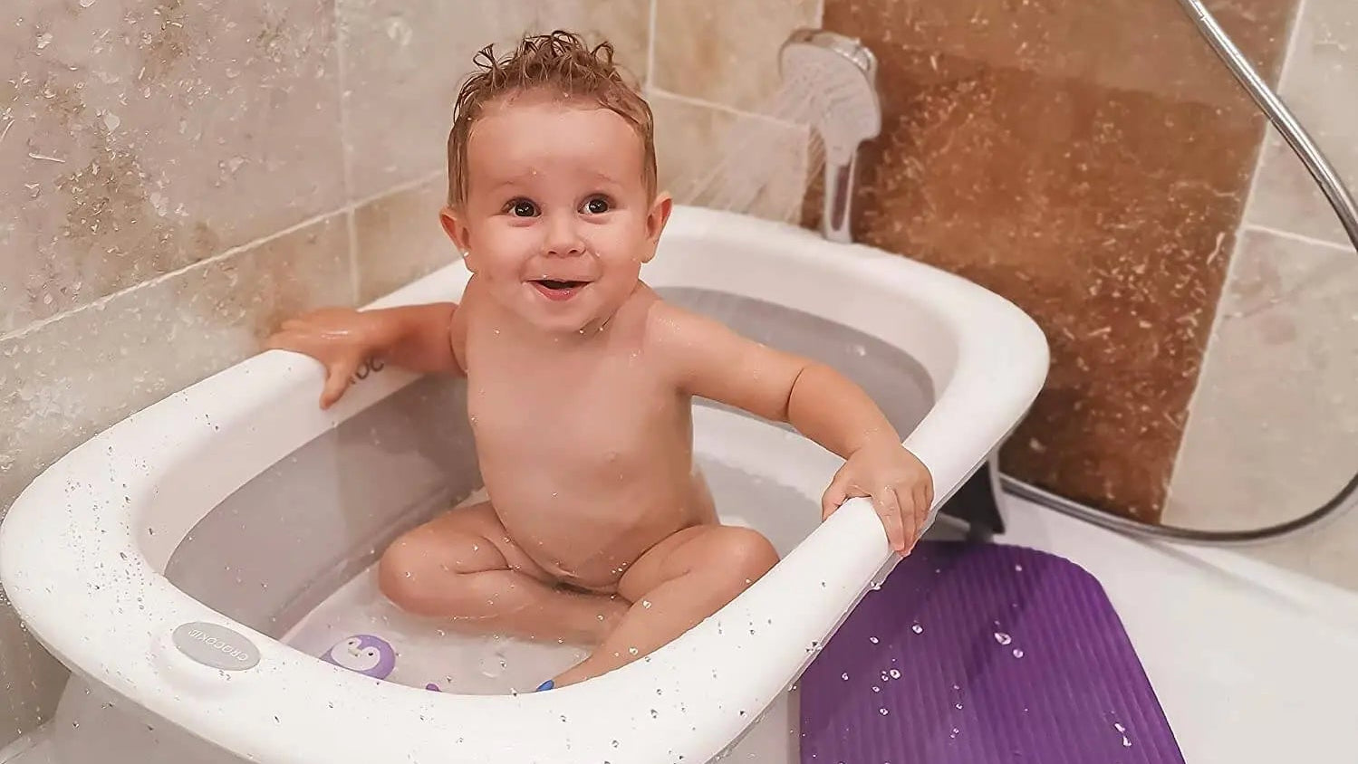 CROCOKID® – Baignoire Pliable Bébé 0-4 Ans | Compacte, Évolutive & Sûre